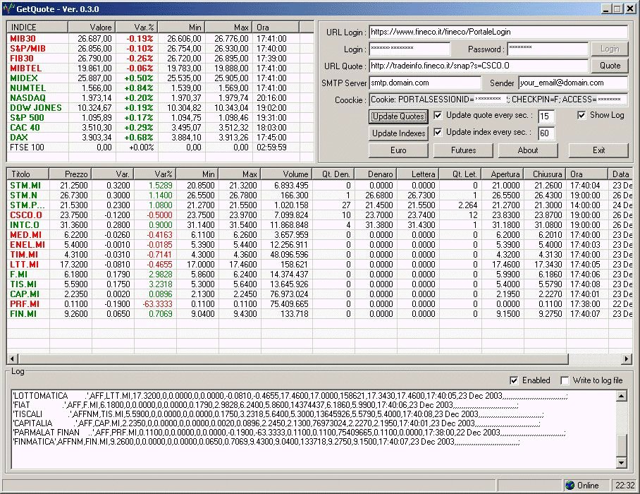 • La richiesta delle quotazione viene eseguita sul server tradeinfo.fineco.it separando i vari titoli con una virgola.