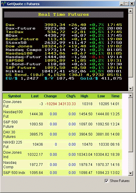 • Quotazione dei Futures in tempo reale